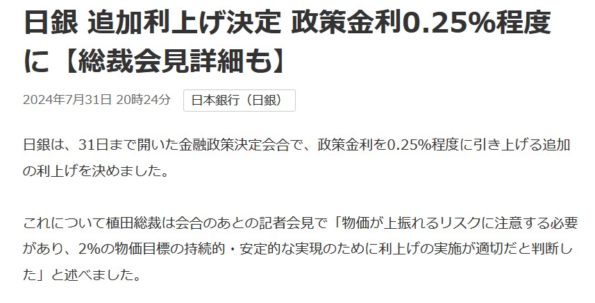 日銀の政策金利利上げ発表を受けて、続々と銀行が金利を上げる発表をしています。