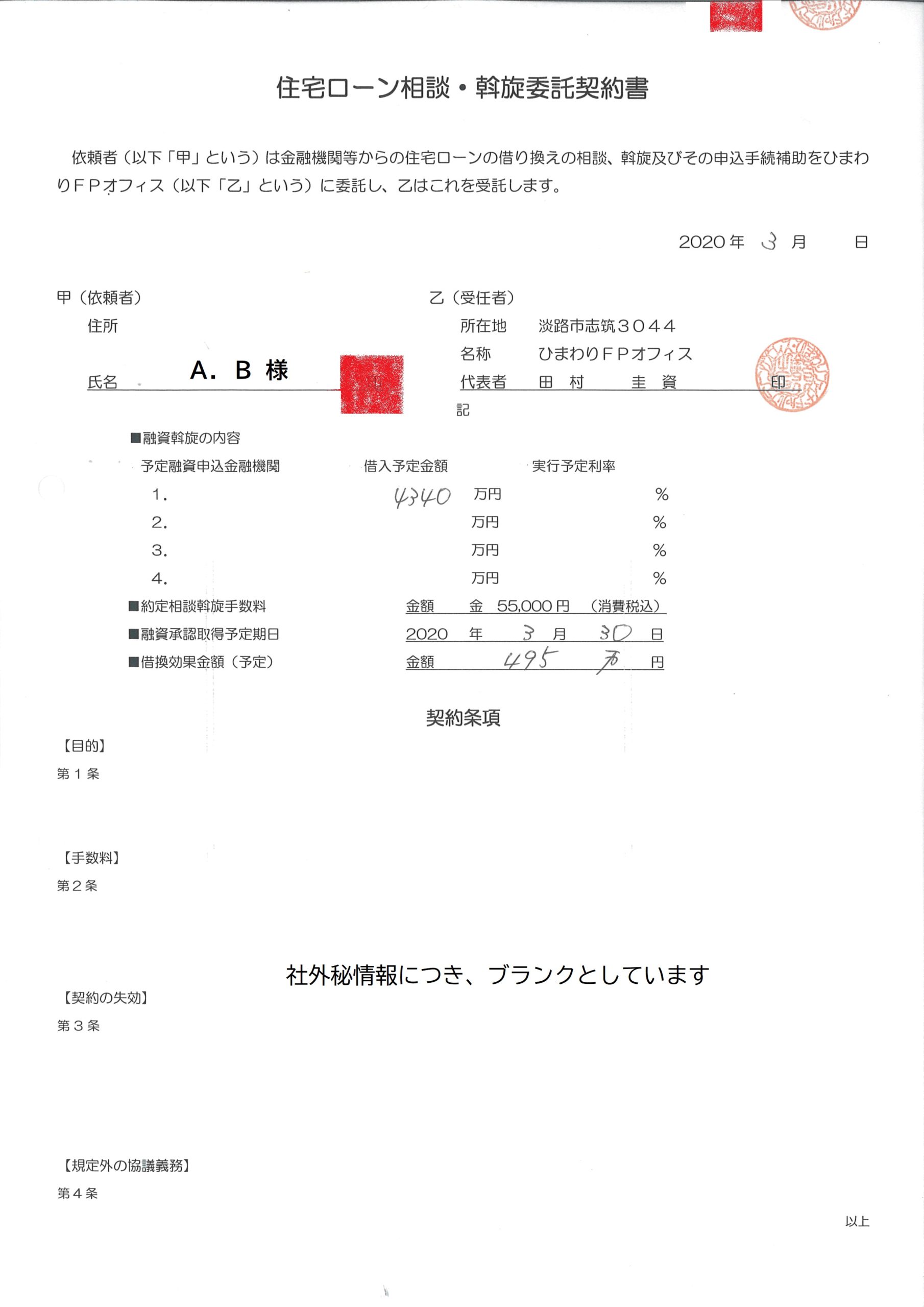 お客様にして頂いた作業は、今現在の住宅ローン返済の内容を教えて頂いただけ。